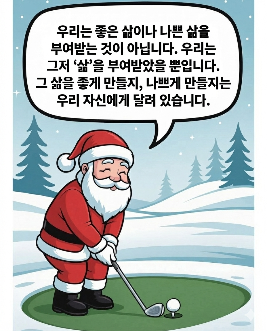 인생은 정해진 타수나 기준점이 있는 경기가 아니다 남과 점수를 비교할 필요도 없다 OB가 나도, 쓰리 퍼트가 나와도 라운드는 계속된다