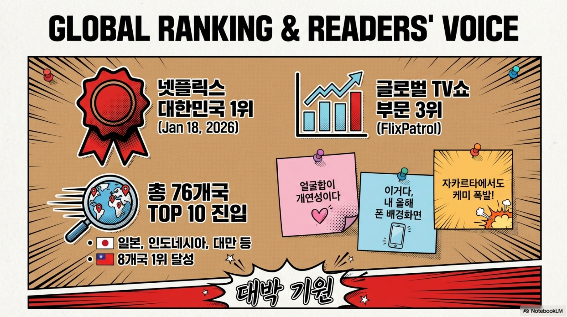 FlixPatrol 기준으로 공개 단 이틀 만에 글로벌 3위 찍었고요, 한국 포함 8개국에서 1위 달성했습니다.