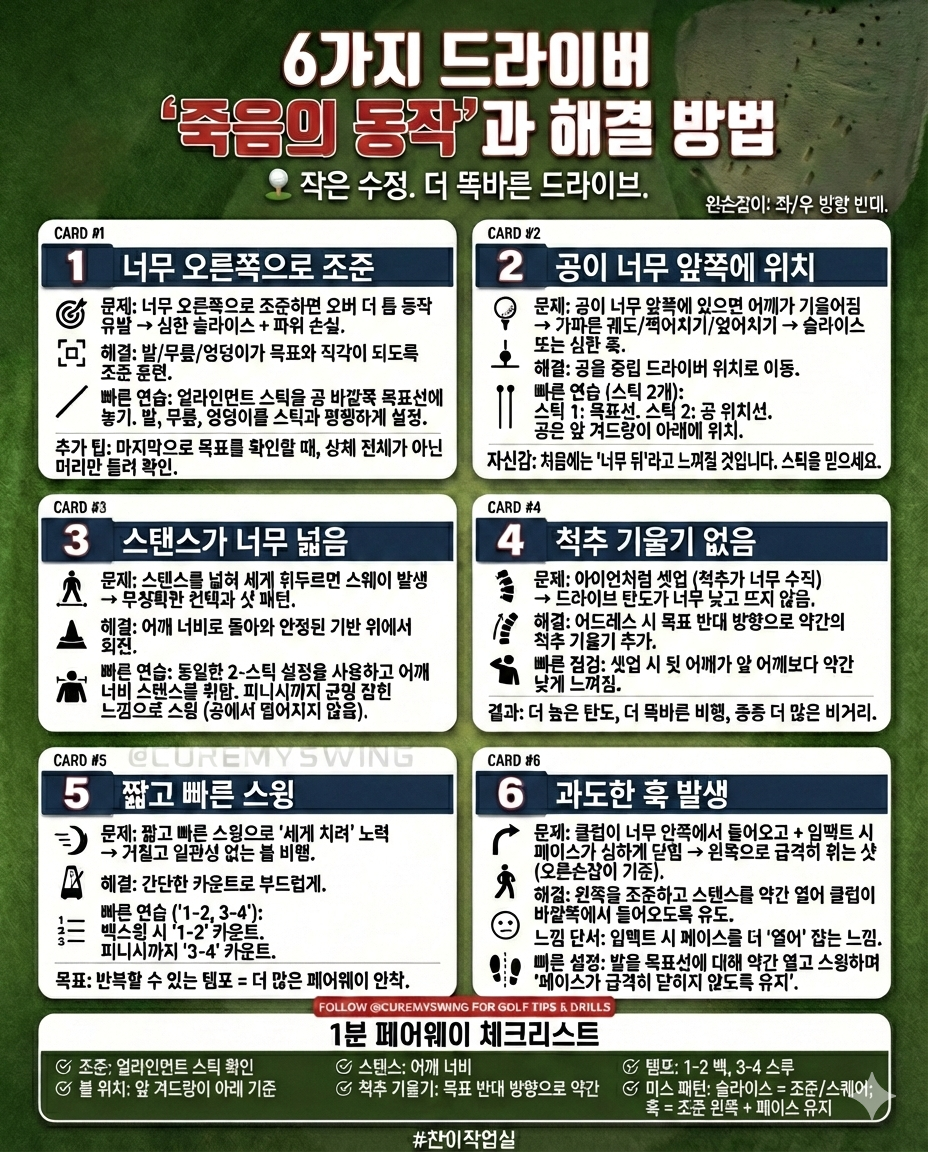 <드라이버 샷을 망치는 6가지 치명적 습관(Death Moves)과 해결법>