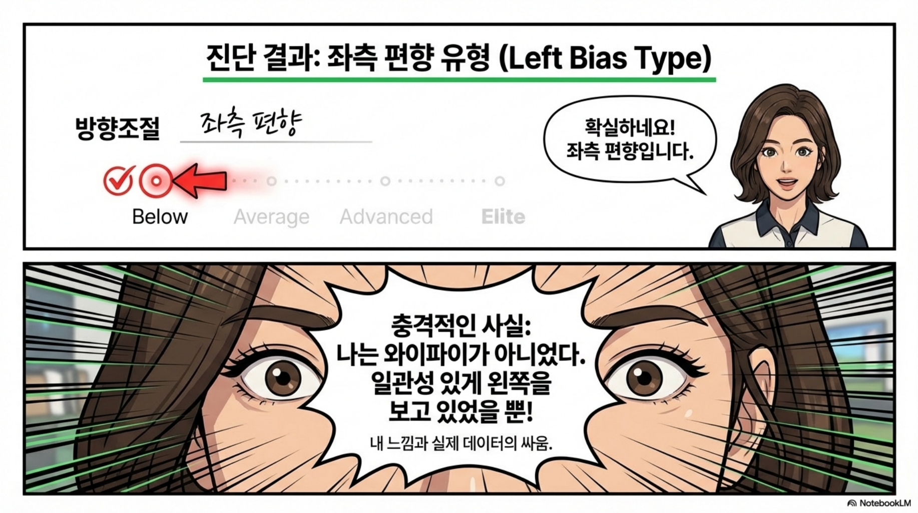 똑바로 섰다고 생각했는데 사실은 이미 왼쪽을 보고 있었던 거죠.