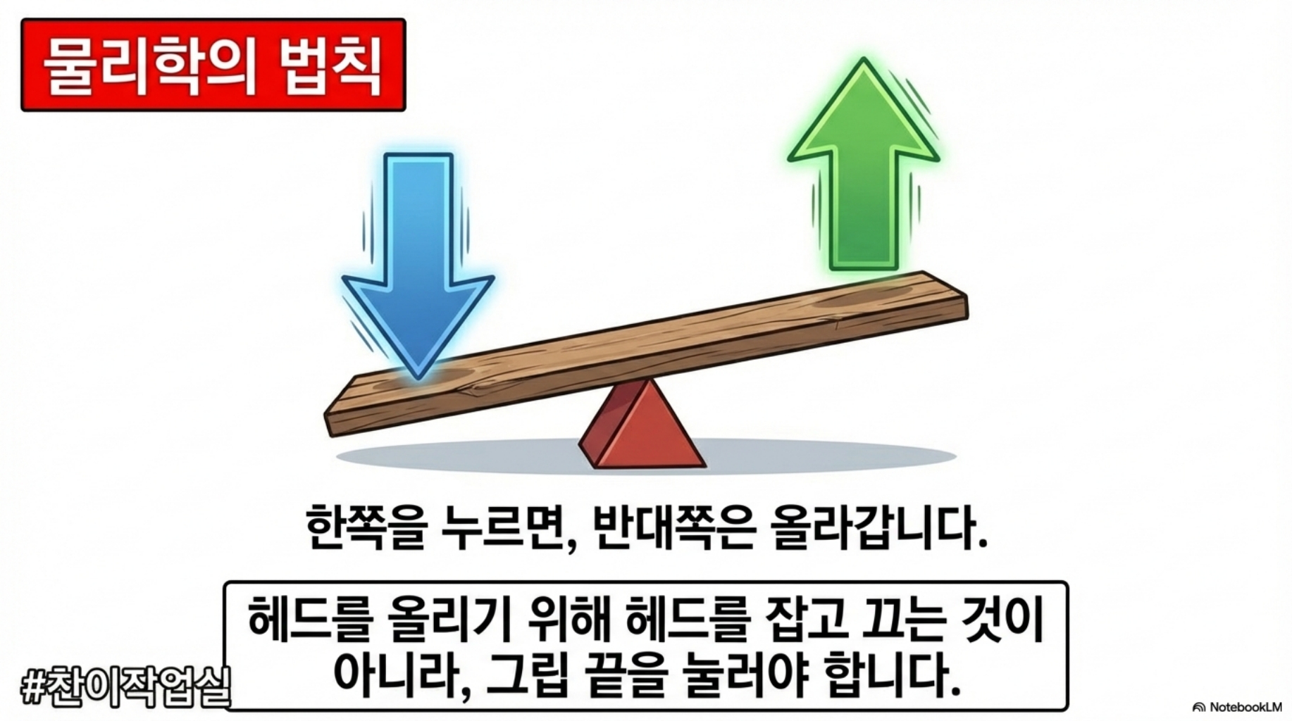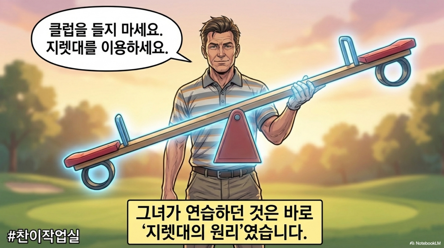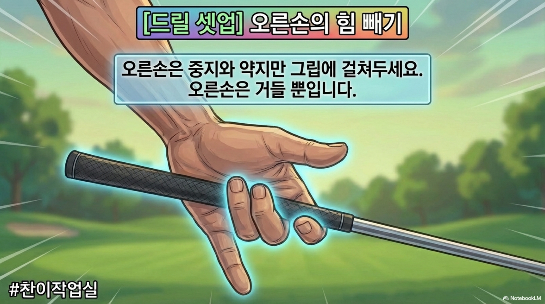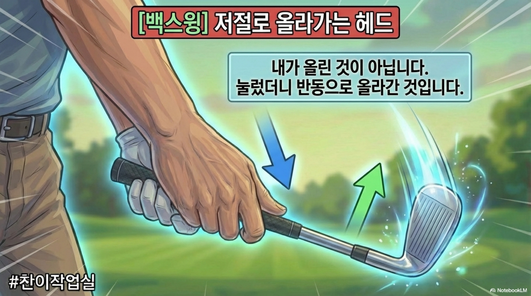 💬 "그립 끝을 아래로 누르면, 클럽 헤드는 위로 올라간다"